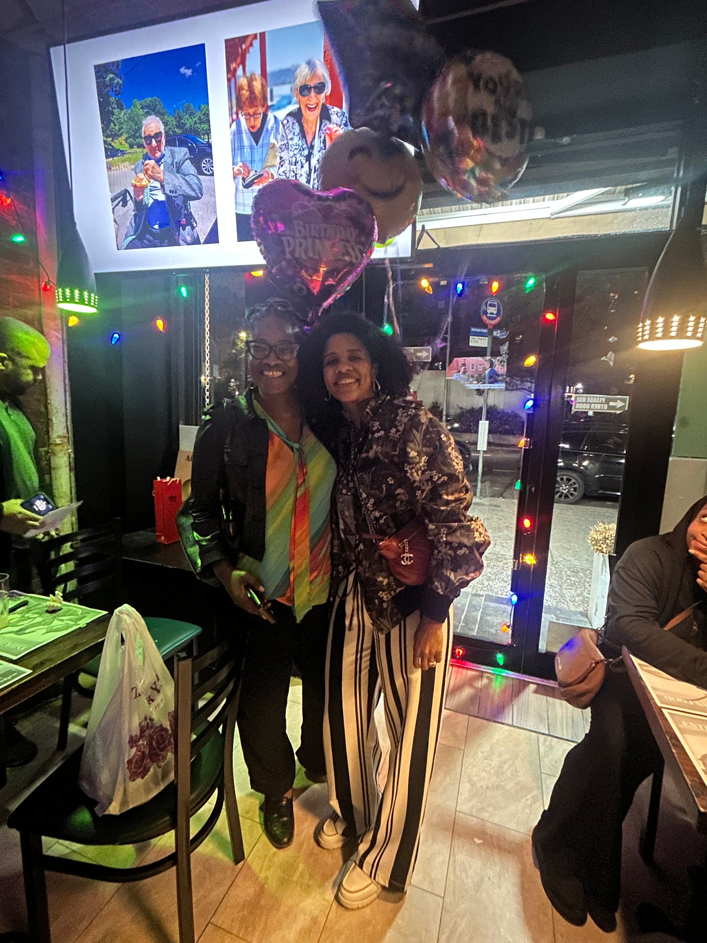 Image: Me with one of my friends from college after her birthday dinner. There’s nothing like a college friend to “keep it a buck” with you. They knew you “when” and probably know you better than most.